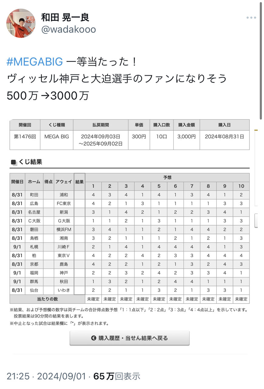 500万→3000万 pic.twitter.com/PzYjkZAsPM— 和田 晃一良 (@wadakooo) September 1, 2024
