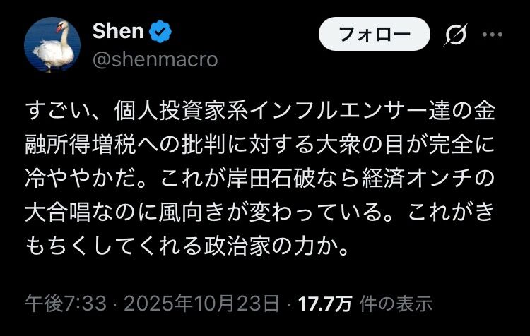 【悲報】高市総理「金融課税さらに強化する」株・投資家発狂「高市やめろおおおおお!!」