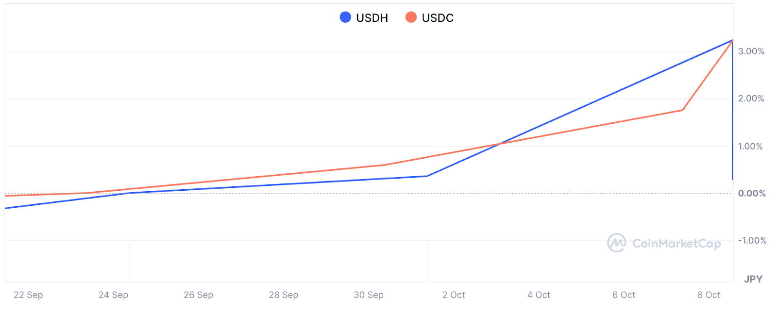 価格差は小さく、USDHがUSDCとほぼ同等の安定性を保ちながら推移している点が特徴です。