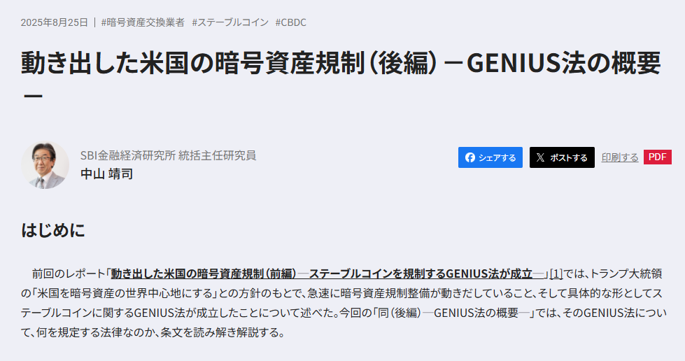 - アメリカ:2025年7月に「GENIUS法」が成立