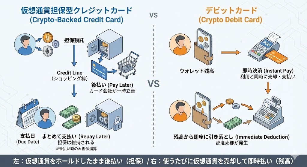 仮想通貨担保型クレジットカードは、一般的なクレジットカードとは仕組みが異なります。