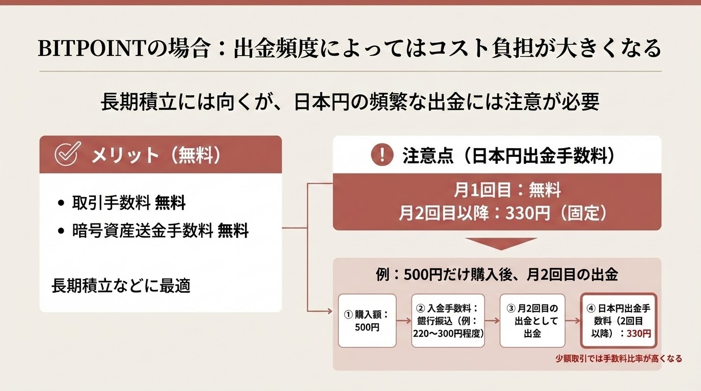 BITPOINTの場合:出金頻度によってはコスト負担が大きくなる