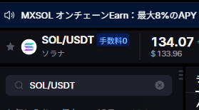 MEXCにSOLが着金したら、USDT(テザー)に交換します。MEXCの現物取引で「SOL/USDT」ペアを選択し、SOLを売却してUSDTを入手しましょう。