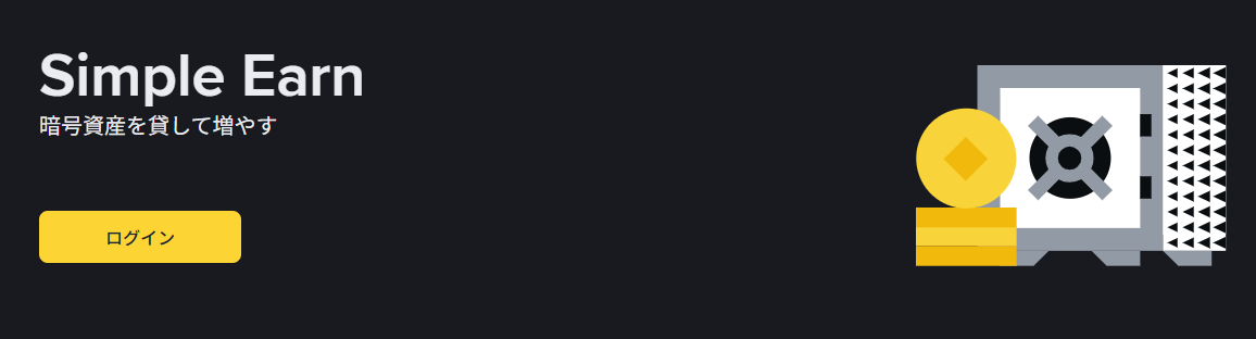 一般的に「レンディング」と呼ばれる投資方法ですが、バイナンスジャパンでは「シンプル・アーン」と呼んでいます。銀行預金の暗号資産版のようなイメージですが、預金と異なり元本保証がないので注意が必要です。