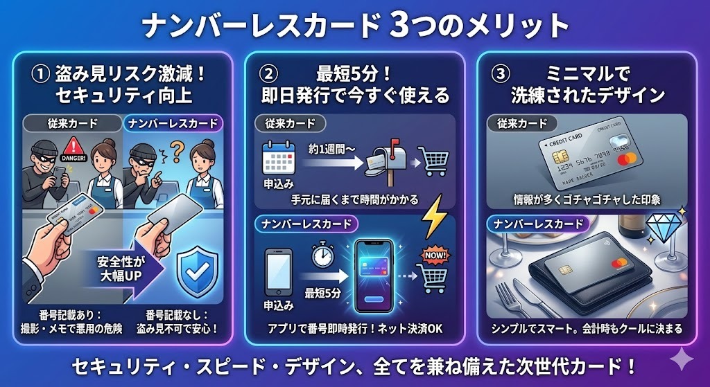 ここでは、普段使いでも実感できる「ナンバーレスカードのメリット」について詳しく解説します。