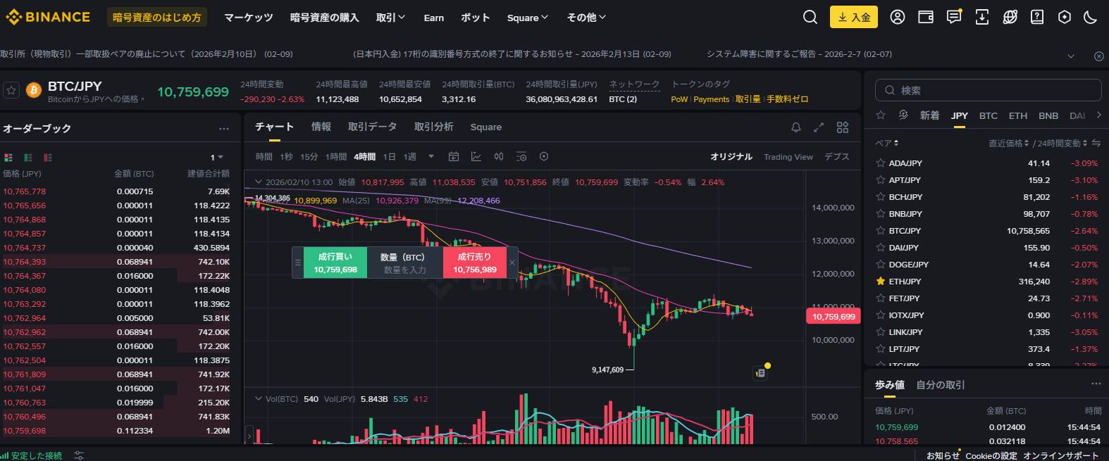 無事に入金が完了したら、さっそくバイナンスジャパンの機能を体験してみましょう。おすすめはこの2つです。