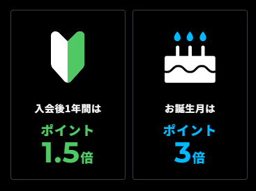 | 入会初年度 | ポイント還元が通常の1.5倍 |