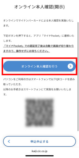 表示内容から「オンライン本人確認を行う」をタップします。