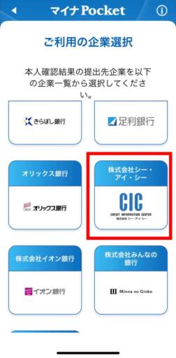 再度マイナPocketが表示されます。起業選択の中から「CIC」を選びましょう。続いて、承認事項の画面が表示されるので「承認する」をタップします。