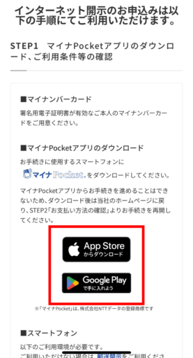 表示画面をスクロールすると、具体的な開示までの手順が記載されています。まずは、上記画面の通り「マイナPocket」アプリをダウンロードします。