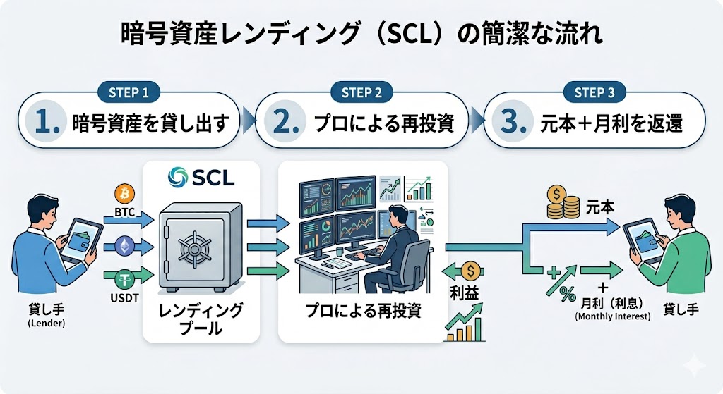 ①自身の保有する暗号資産をSCLに貸し出す